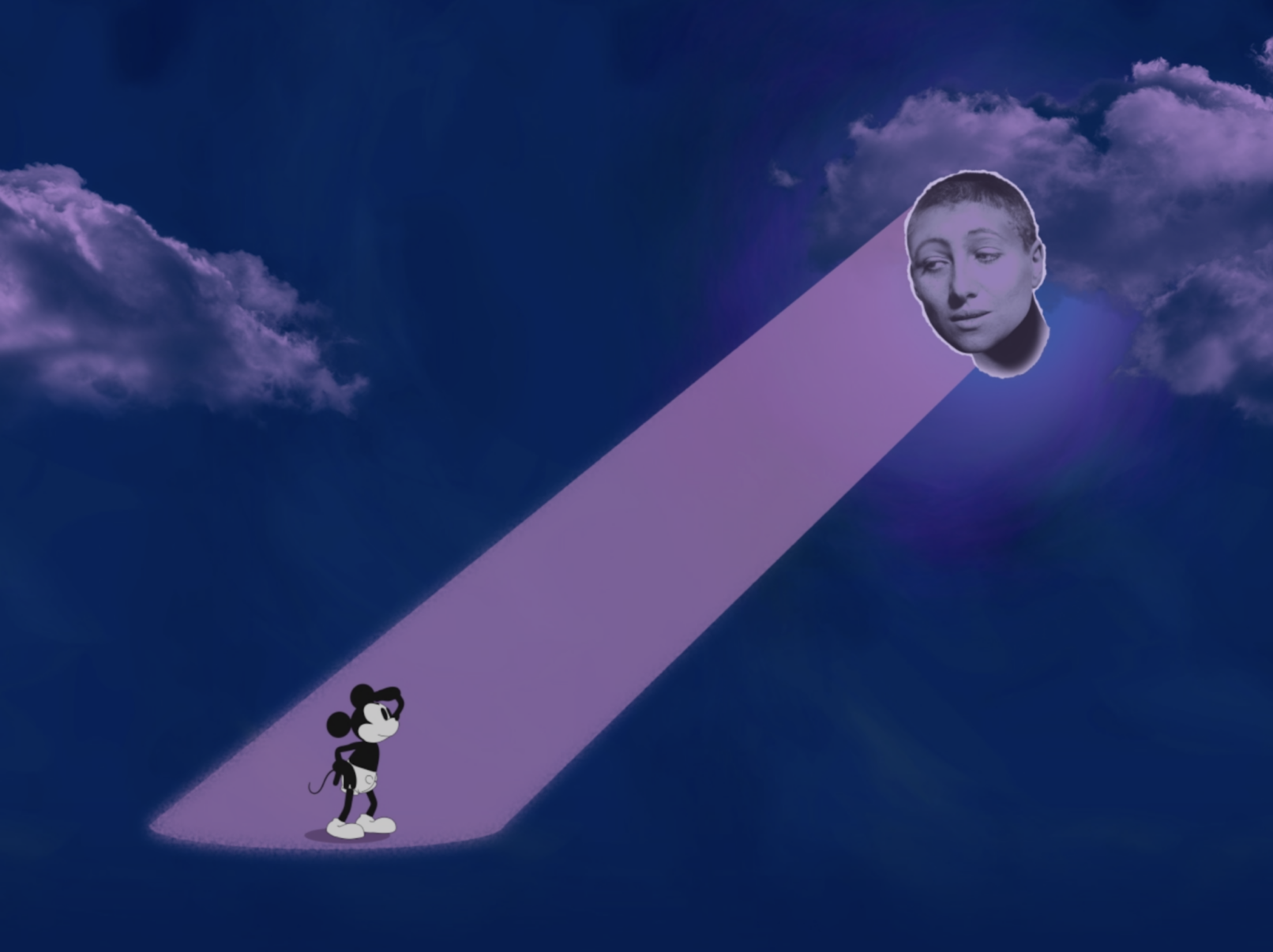 At the heart of the exhibition is the film *Famous Mouse and Joan of Arc*, shown on a large LED wall. Here, Disney’s 1928 animated film and Carl Theodor Dreyer’s silent masterpiece *The Passion of Joan of Arc* converge, creating a luminous encounter between pop culture and spiritual martyrdom. The work traces the circulation of images, icons, and narratives across time, linking humor, devotion, and media critique in a visually immersive experience.
